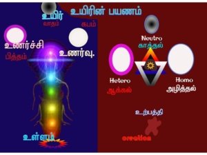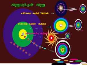 6.ஒவ்வோர் அணுஇயக்க துகளிலும் உள்ள இந்த கட்டமைப்பு விதிகளைத்தான் அறிவியலார்கள் போட்டான்,நியுட்ரான், புரோட்டான், எலெக்ட்ரான், நியுட்ரினோ என அழைக்கிறார்கள்.
