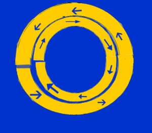 3. இரு எதிர்மறை தங்கநிற பட்டை ஆற்றல்கள் ஒன்றுக்கொன்று எதிர்திசையில் தங்கள் இருப்பிடத்திலிருந்து முழு சுழற்சி கொண்டு எதிர்முனையை அடைகிறது.